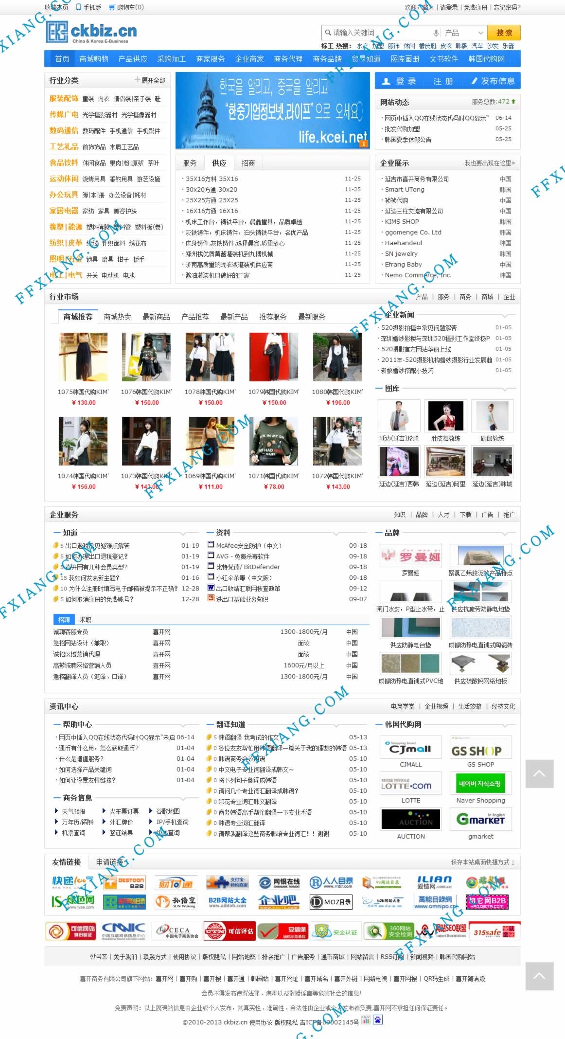 喜開網(wǎng)提供商家企業(yè)產(chǎn)品,商品信息,韓國代購,韓國采購,貿(mào)易文書下載,商務(wù)代理,中韓文翻譯信息等,將優(yōu)秀商家企業(yè)信息翻譯成韓文免費(fèi)發(fā)布推廣到韓國各大門戶網(wǎng)站上,打造中國第一中韓貿(mào)易在線交易平臺。