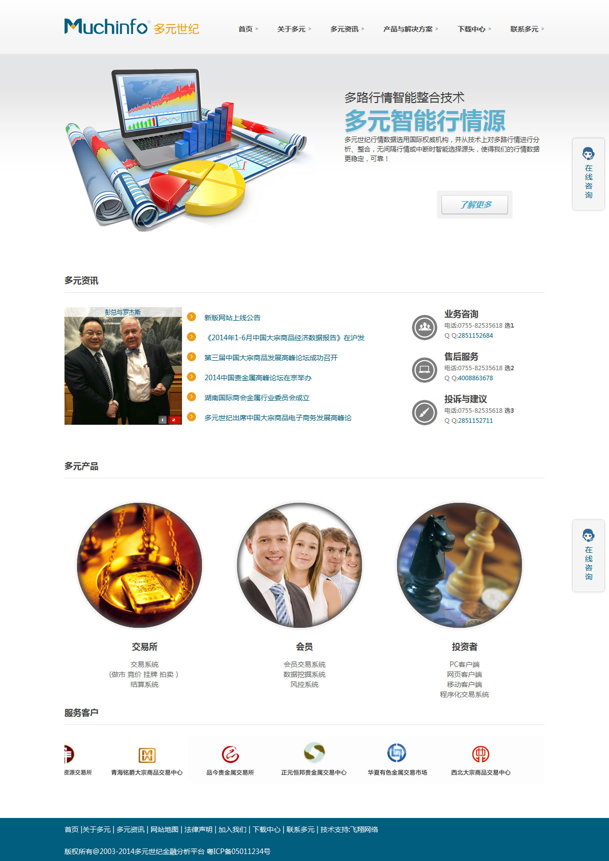 深圳多元世紀(jì)信息技術(shù)有限公司秉承秉承“攜手多元,共創(chuàng)世紀(jì)”的共贏理念,堅持專業(yè)、誠信、創(chuàng)新、共贏的發(fā)展思路,研制開發(fā)了大宗商品電子交易系統(tǒng)、貴金屬交易系統(tǒng)、線上支付結(jié)算臺等一系列擁有自主知識產(chǎn)權(quán)的軟件產(chǎn)品,為客戶提供了全面的一站式應(yīng)用解決方案。