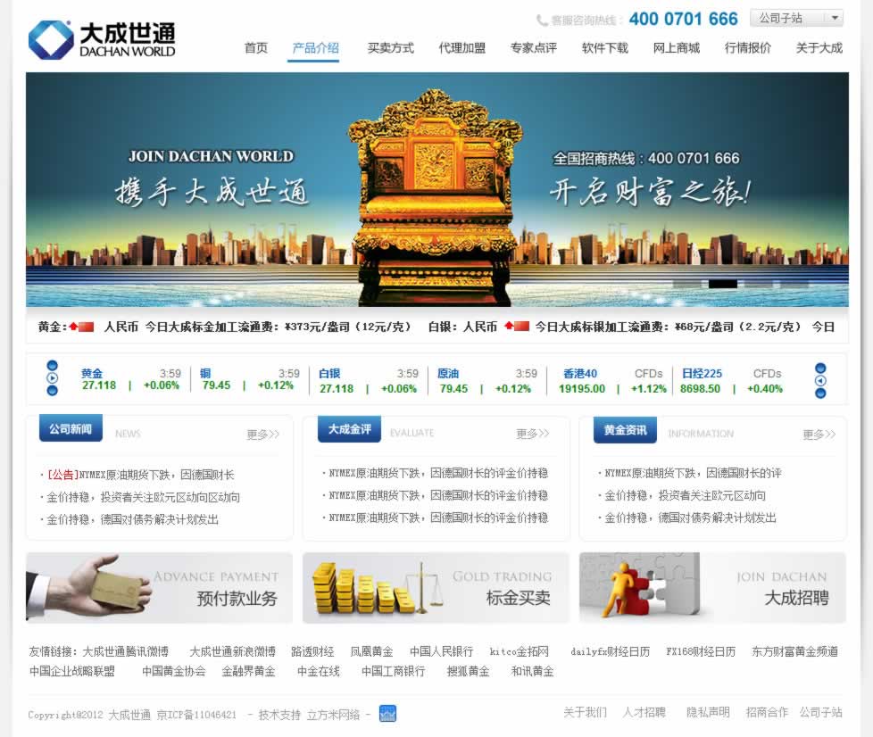 大成世通投資有限公司(以下簡(jiǎn)稱“大成世通”),是一家以投資產(chǎn)業(yè)為主導(dǎo),集投資管理、實(shí)業(yè)經(jīng)營(yíng),能源開(kāi)發(fā)等為一體的綜合性投資金融機(jī)構(gòu)。公司運(yùn)用國(guó)際 先進(jìn)投資管理理念,整合國(guó)內(nèi)外優(yōu)質(zhì)行業(yè)資源,致力于建立國(guó)內(nèi)最權(quán)威、最專業(yè)、最規(guī)范、最安全的資產(chǎn)管理平臺(tái),全面打造具有國(guó)際競(jìng)爭(zhēng)力的投資行業(yè)領(lǐng)軍品牌, 立志成為國(guó)內(nèi)投資行業(yè)引領(lǐng)者。